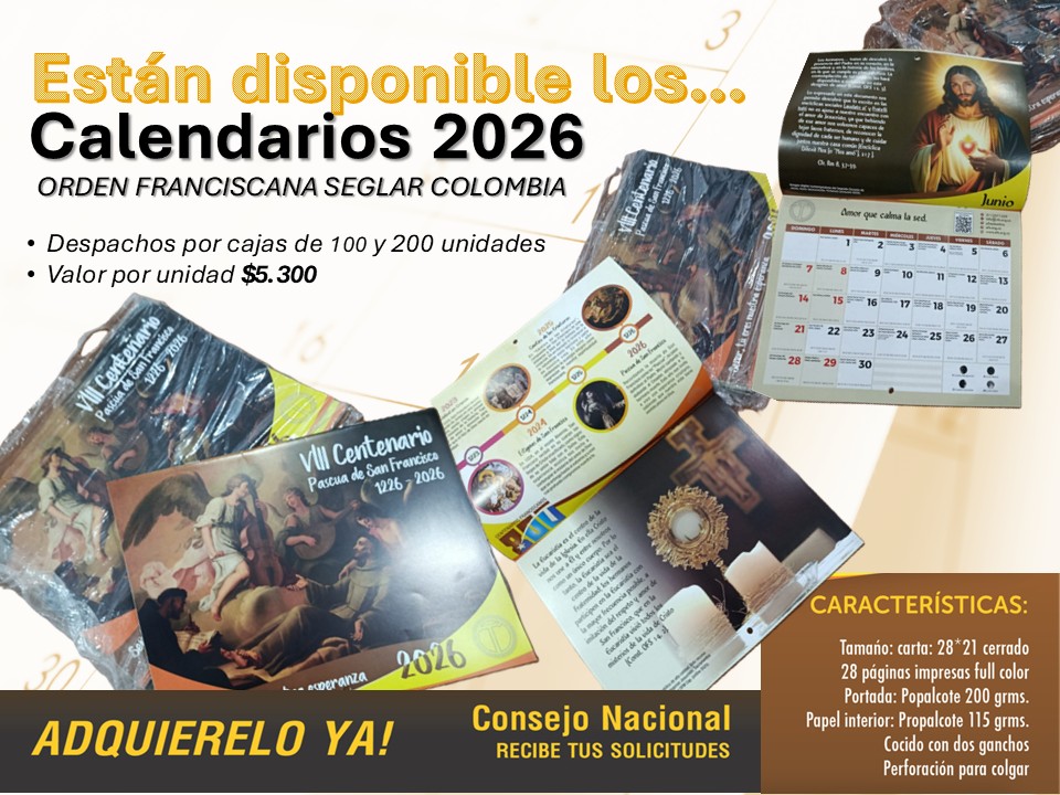 Siguen disponibles los Calendarios 2026, una hermosa herramienta para vivir y compartir nuestra espiritualidad franciscana durante el año del VIII Centenario de la Pascua de San Francisco.